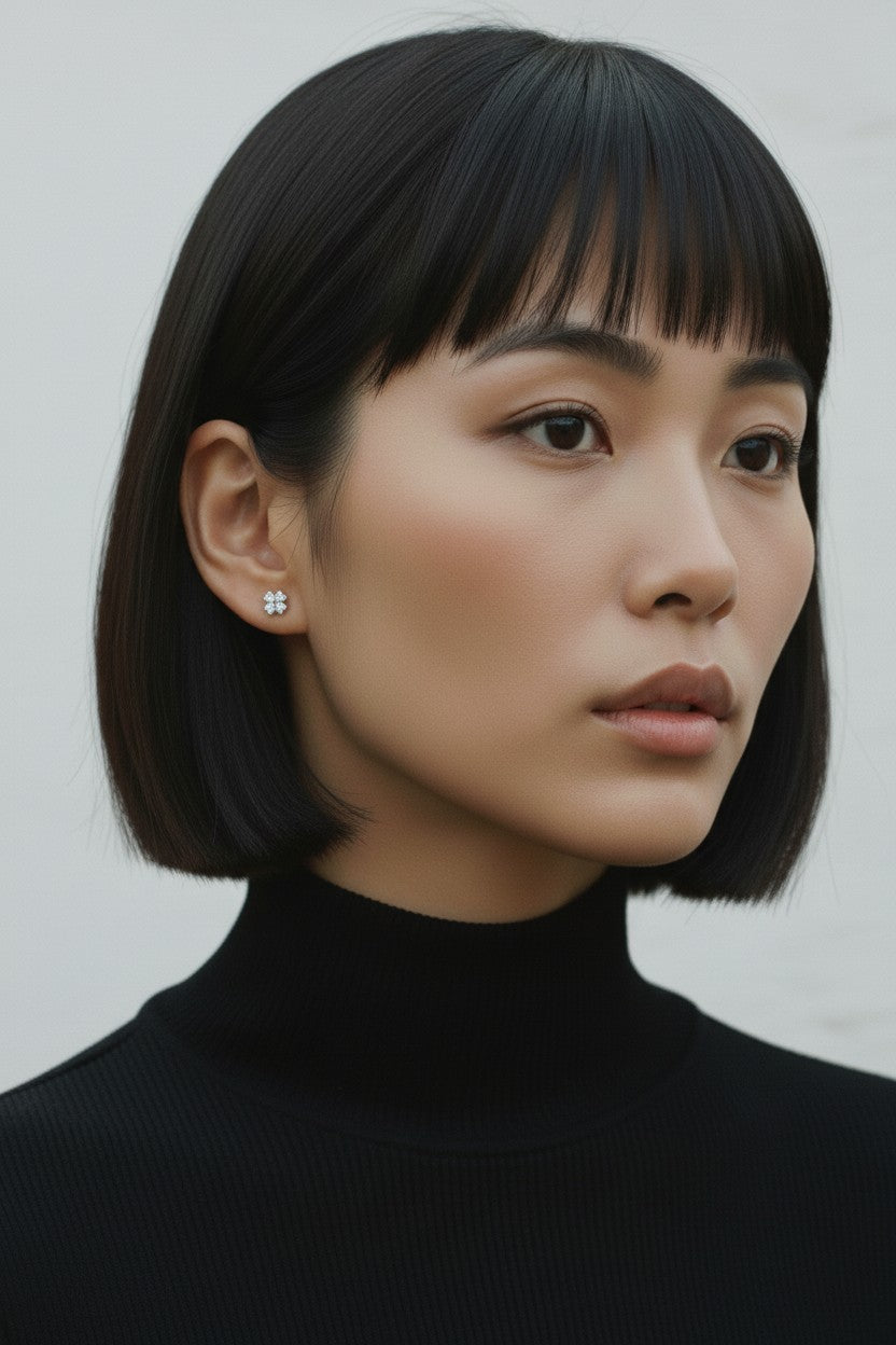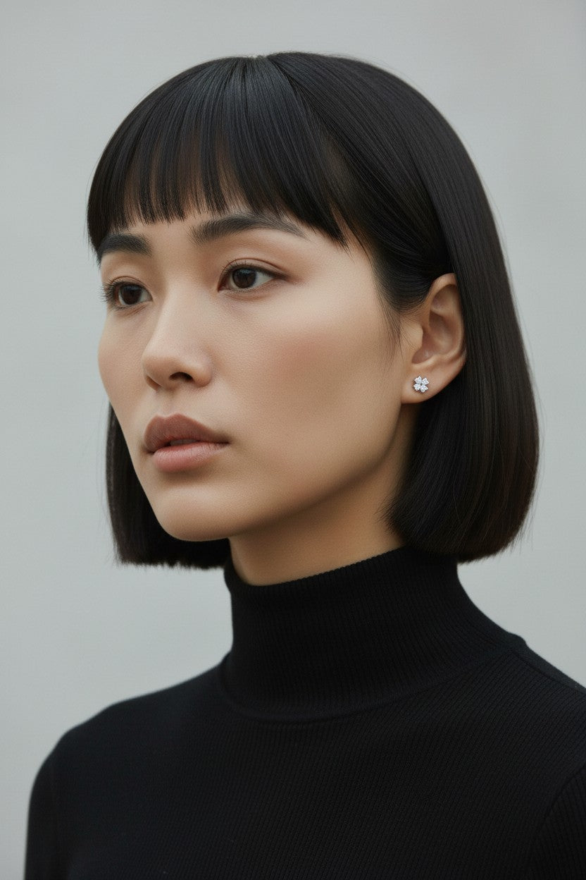 小粒ストーンを花のように配した上品なクラスター。耳に沿うコンパクトサイズ。 ねじ式のフラットバックで装着感が安定するラブレット。肌にやさしいサージカルチタン製ボディ(16G=約1.2mm)。マスクや髪に絡みにくく、就寝時も快適。ポスト長 8/10mmから選べ、耳たぶや軟骨まで幅広くフィットします。金属アレルギー対応で、シーンを選ばず上品に輝きます。