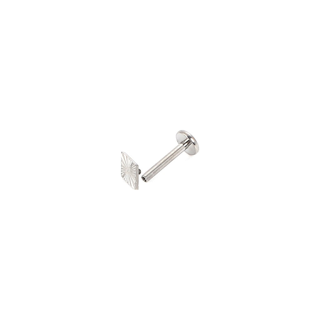 メタル(サージカルチタン)の質感をいかしたフラットなプレートトップ。 ねじ式のフラットバックで装着感が安定するラブレット。肌にやさしいサージカルチタン製ボディ(16G=約1.2mm)。マスクや髪に絡みにくく、就寝時も快適。ポスト長 8/10mmから選べ、耳たぶや軟骨まで幅広くフィットします。金属アレルギー対応で、シーンを選ばず上品に輝きます。